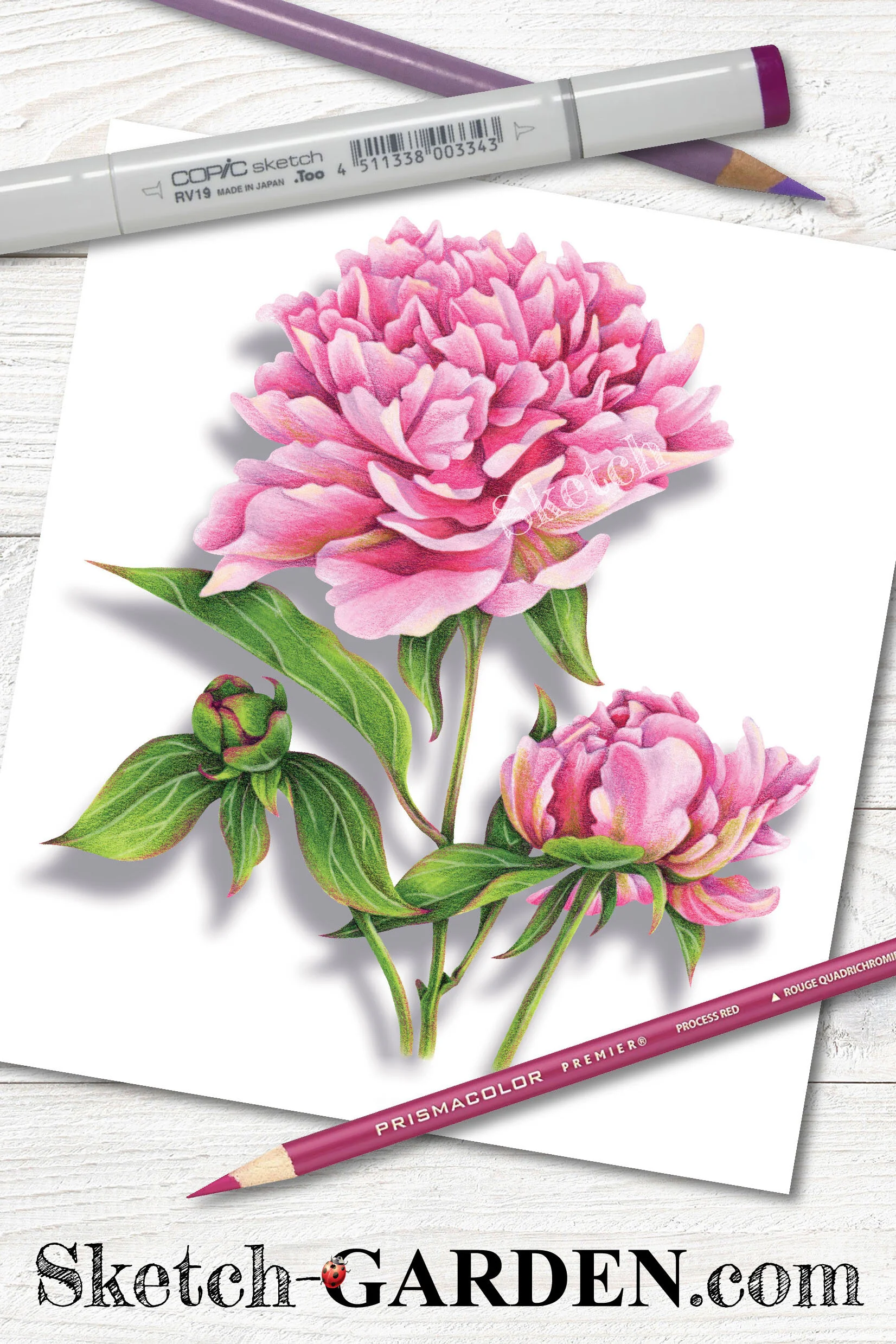 Use What You Learn: Color Dimensional Peonies with Copic Marker & Colored Pencil