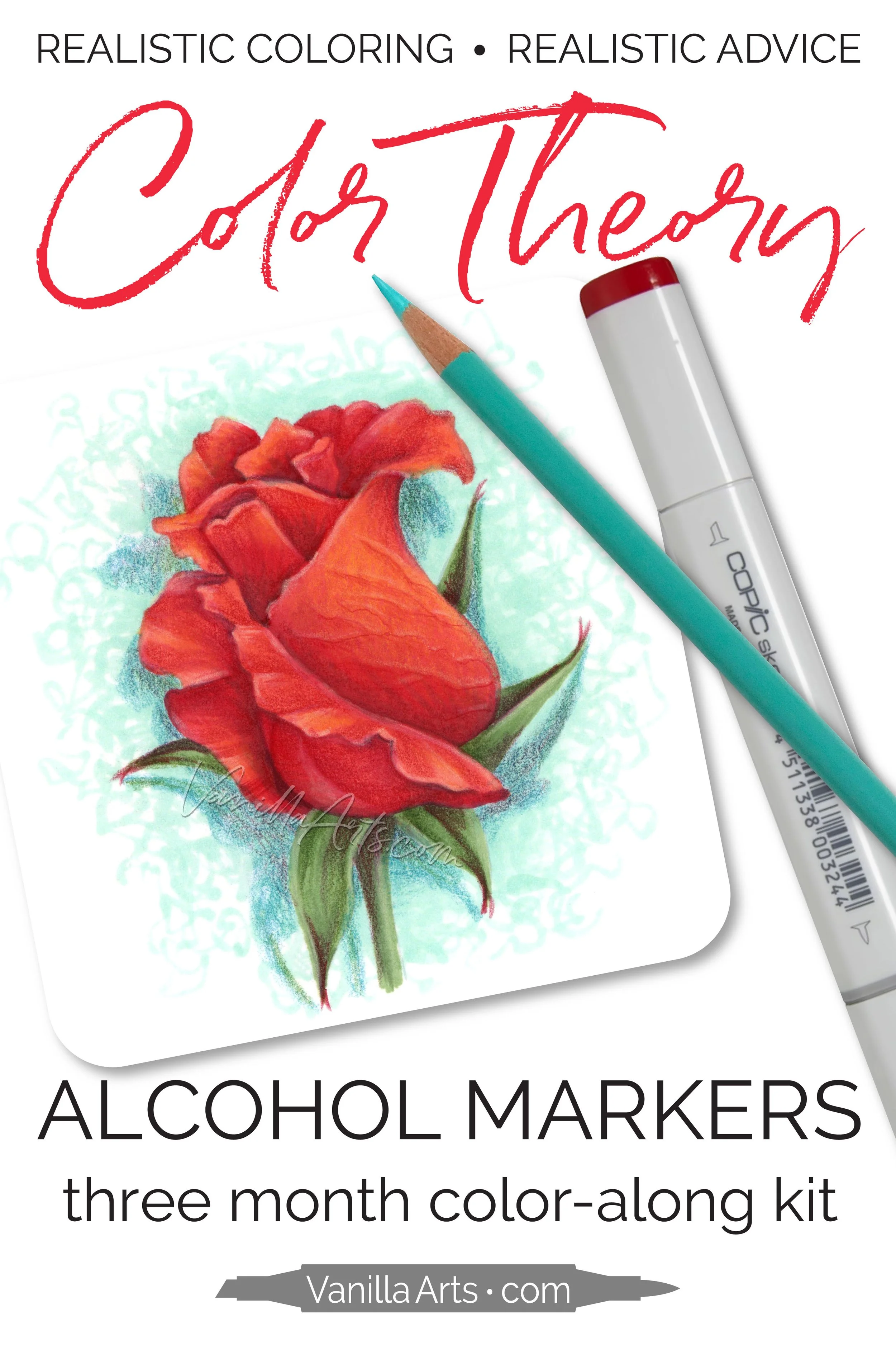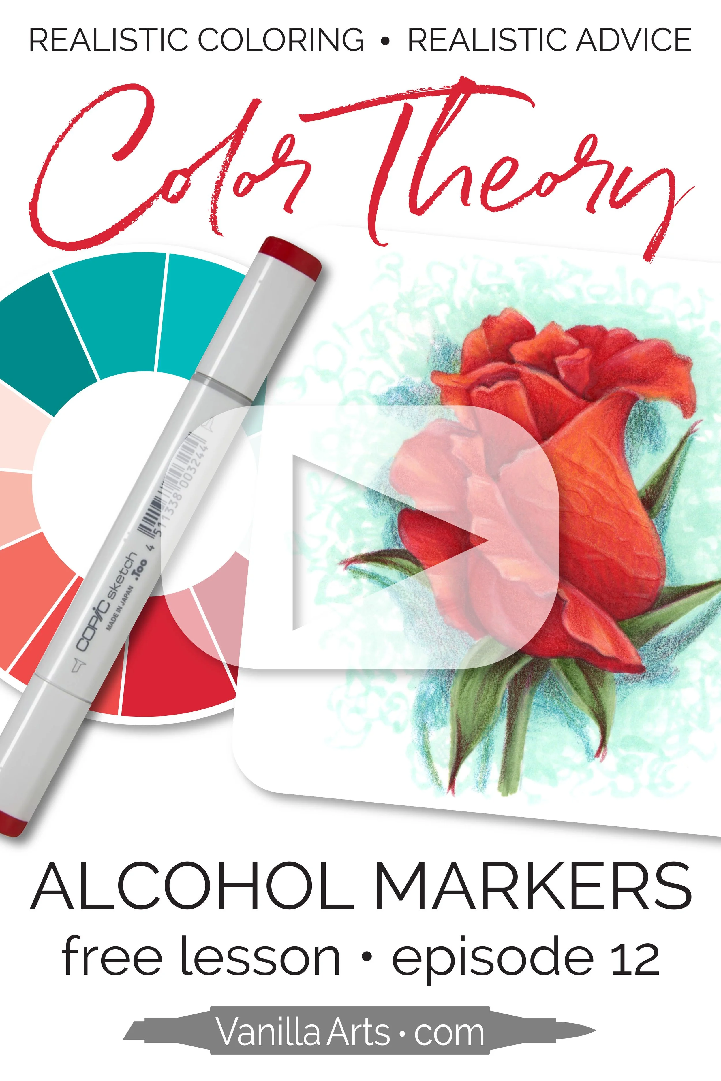 Color Theory for Markers: Red Rosebud (Live Coloring Demo - Episode 12)