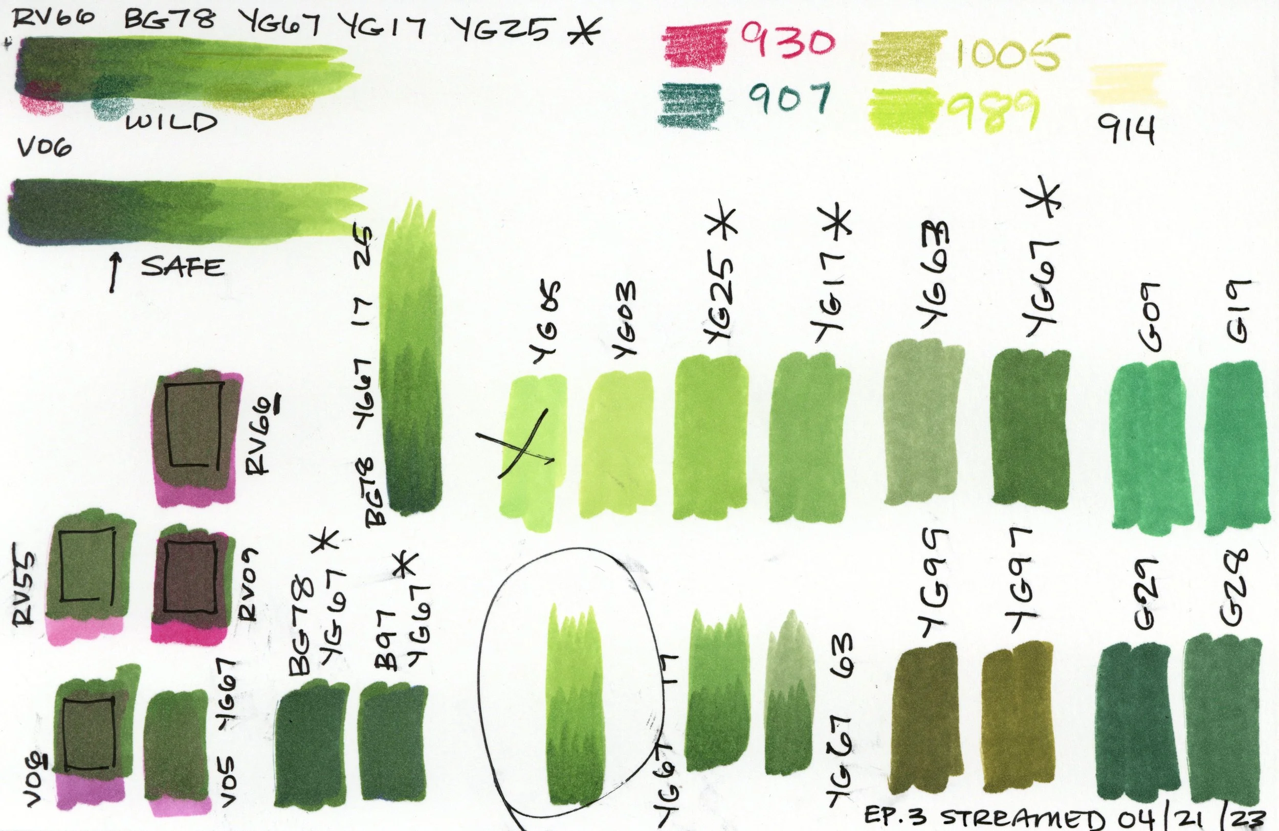 Color Theory for Markers & Pencils: Shade a Warm Green Leaf (Live Swatching - Episode 3)