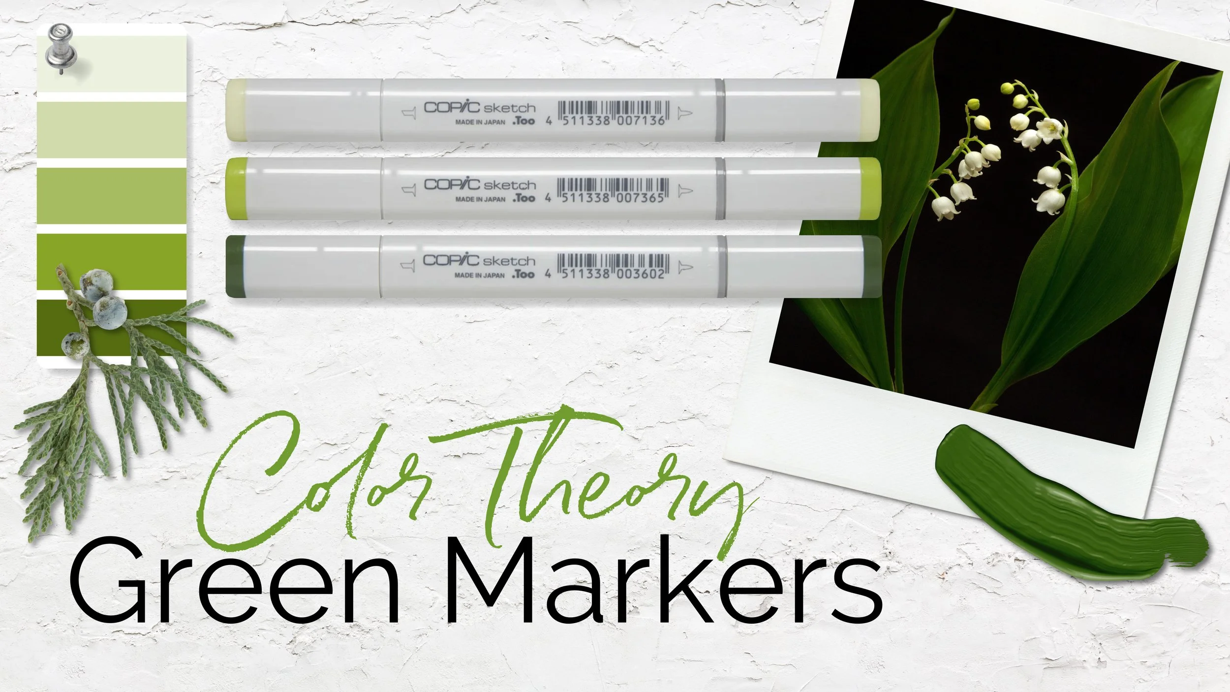 Alcohol markers are popular for blending but the technique often results in cartoonish and flat leaves. Light-medium-dark green combinations do not look realistic. In this free video series, illustrator Amy Shulke shares her color theory process to select realistic, dimensional colors which blend beautifully.