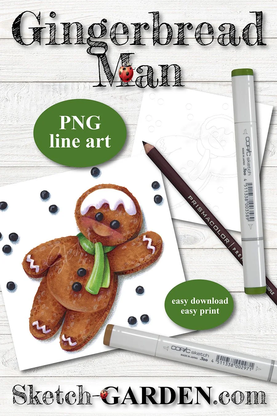 Now he’s all ready for you to color with your favorite gingerbread marker recipe!