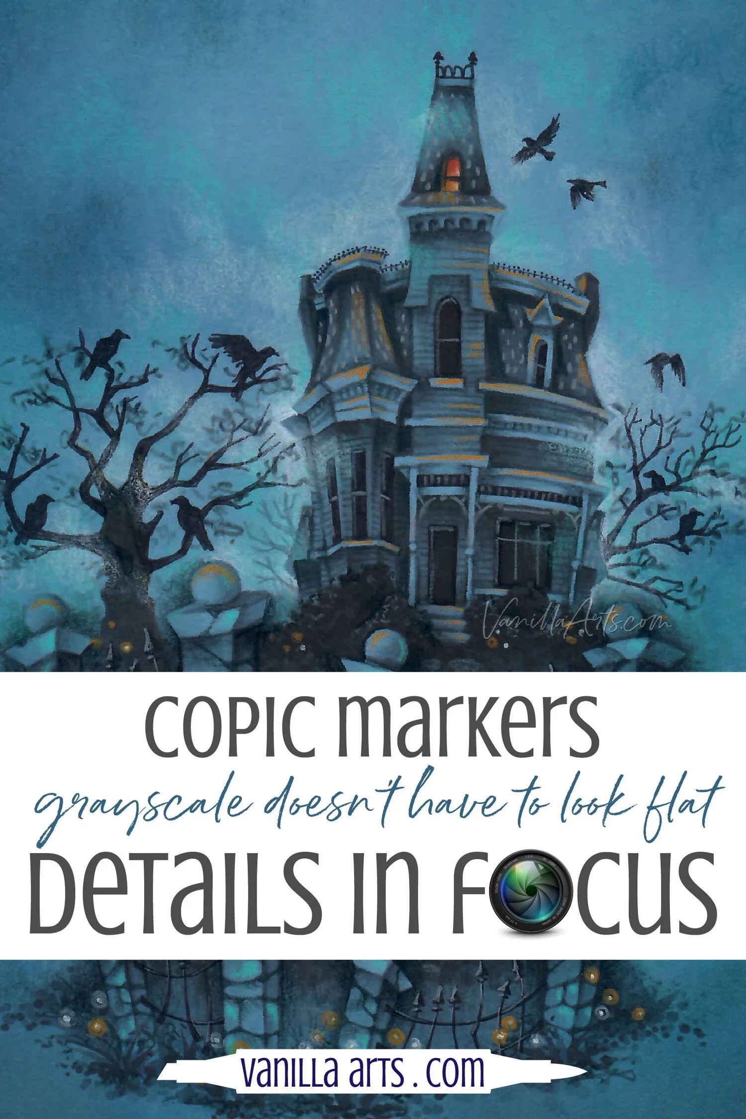 Draw & Color: Gray Witch Hat with Copic Markers & Prismacolor Pencils