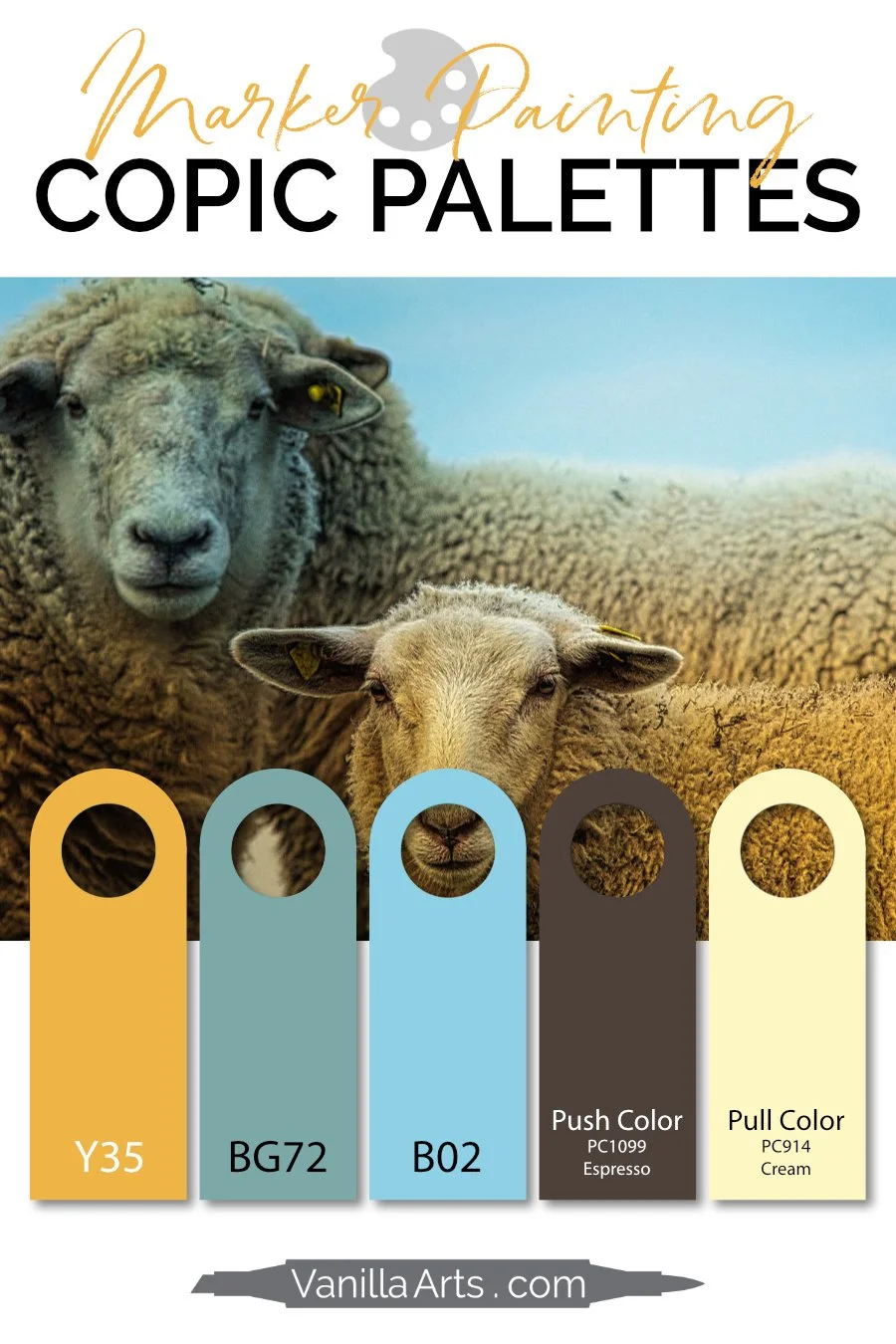 Color Palette: Copic Marker + Colored Pencil Combination (Maize, Pale Teal, Light Blue) Baa Baa Blue