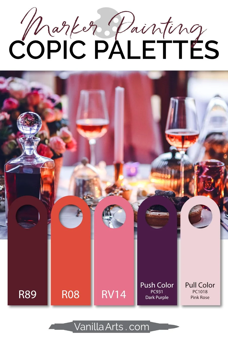 Amy creates color palettes especially for your marker painting projects. Her Copic + colored pencil palettes include push and pull suggestions for creating depth, dimension, and realism.