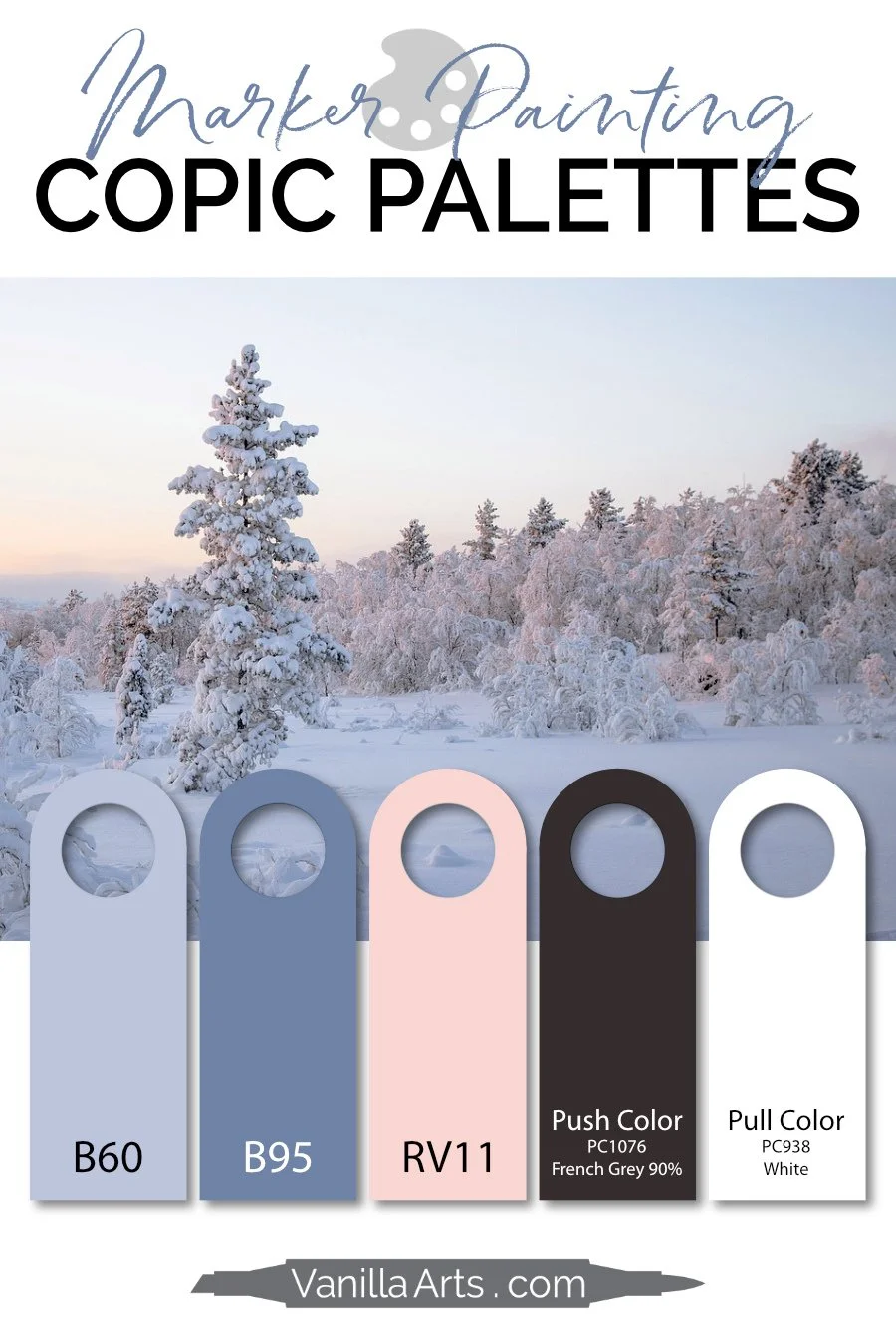 Color Palette: Copic Marker + Colored Pencil Combination (Blue-Gray, Blue, Pink) Powdery Snow