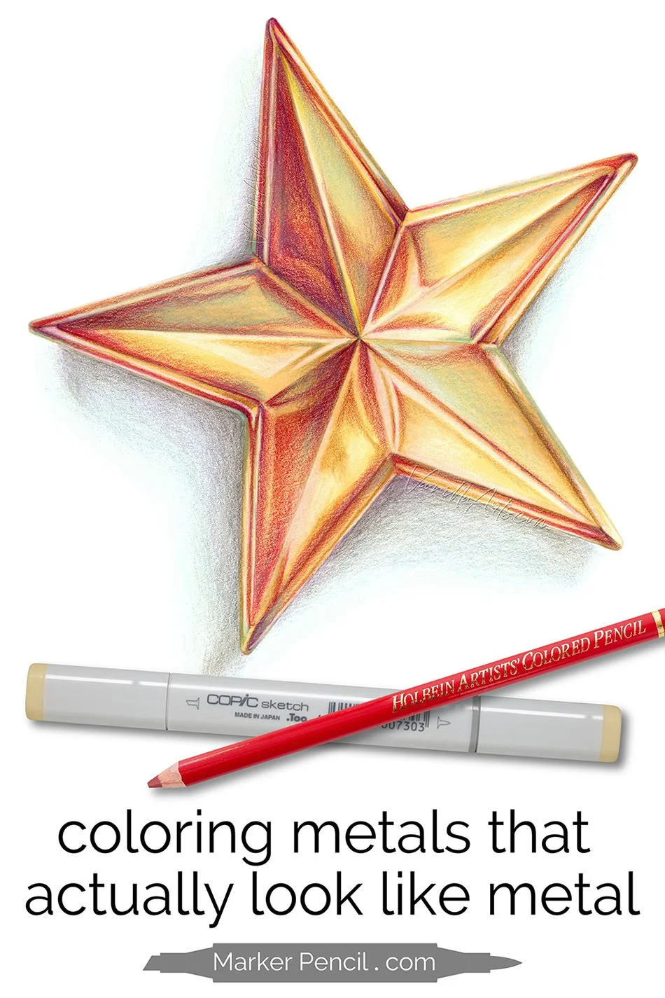 How to Color Realistic Gold, Silver, Metals with Markers, Colored Pencils