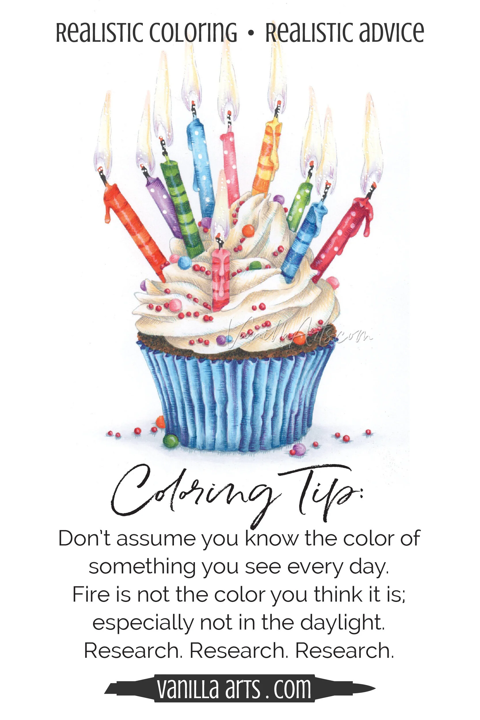 Coloring Tip: Background color creates the feeling of a particular time of day. Never trust your memory because many objects look one color during the day and a different color at night. Are you coloring daytime fire with midnight campfire color? Research to match your colors to time and setting.