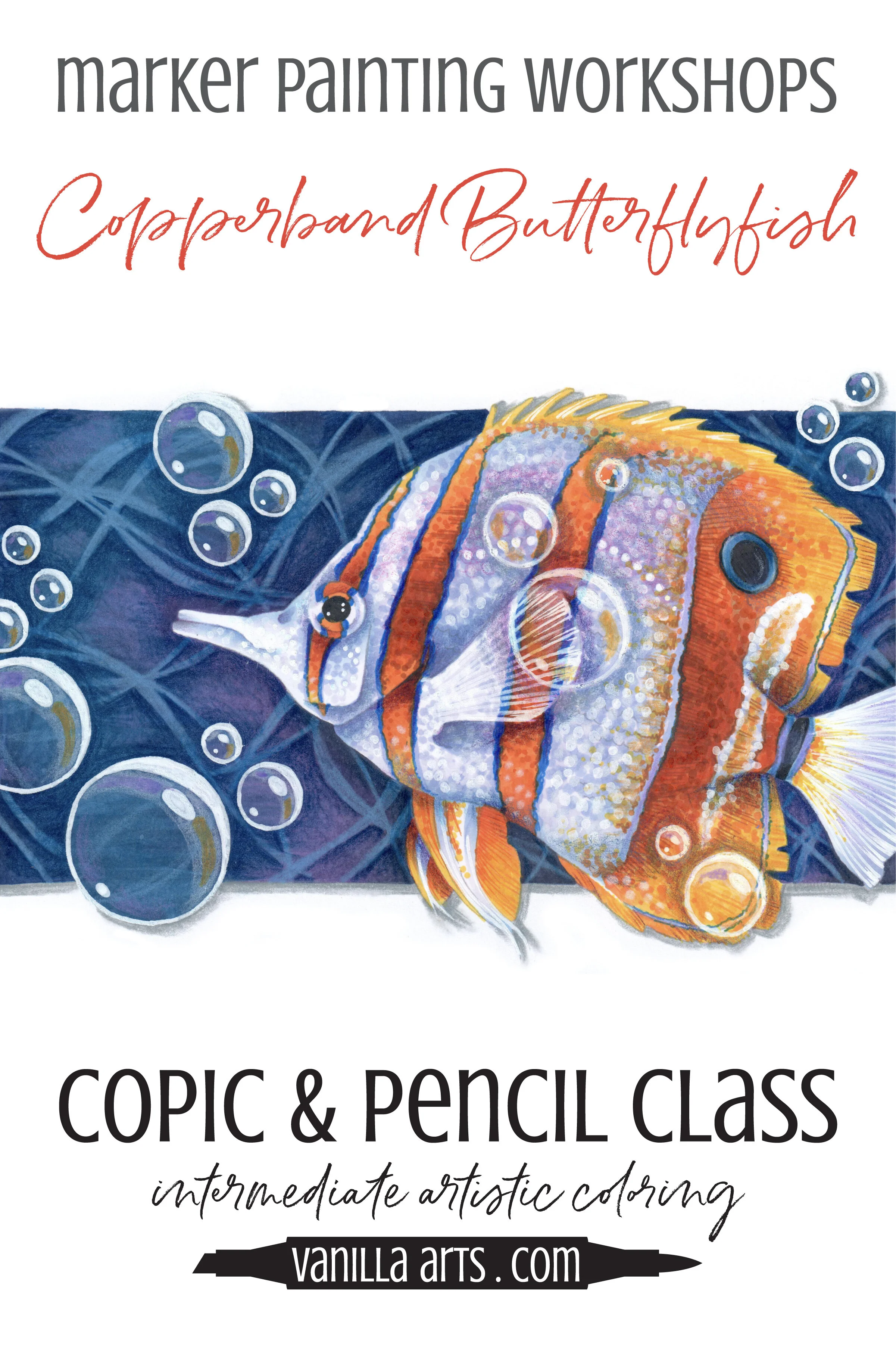 To create the murky shade colors that Copic Marker does not make, Vanilla Arts Company teaches Online Workshops using the underpainting method. Students learn to layer colors realistically rather than blend.