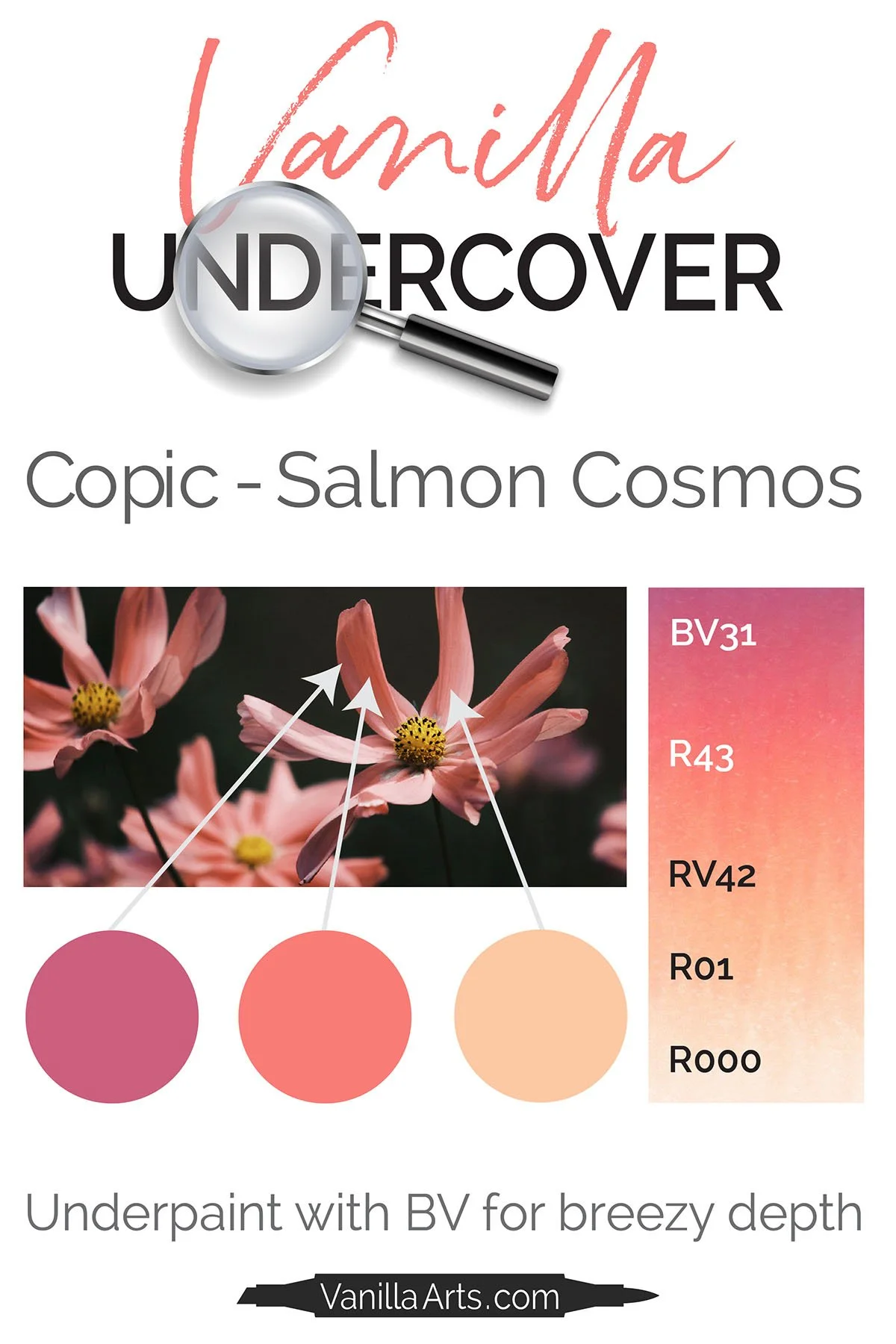 Marker Underpainting: Realistic Copic Blends - Pink Swatch (Salmon Cosmos)
