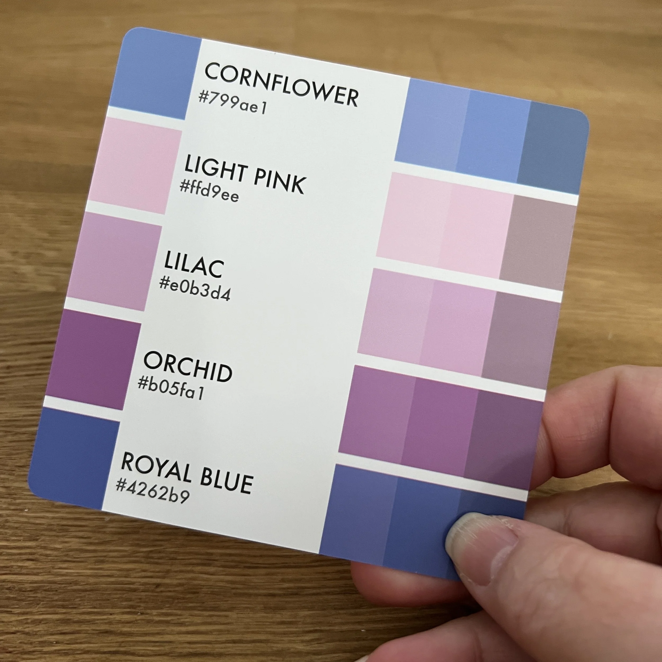 Cube cards are also portable. You can lay similar palettes side by side to debate which is best for the project. With a book, you’ve gotta flip back and forth between pages and stick bookmarks everywhere… it’s friction.