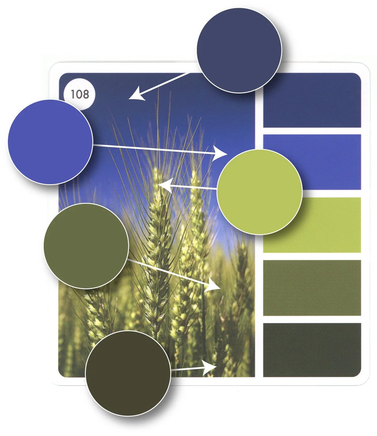 But below that, using one eyedropper and zero brain cells, I created eight different color palettes from Sarah’s wheat photograph. It took me 90 seconds.