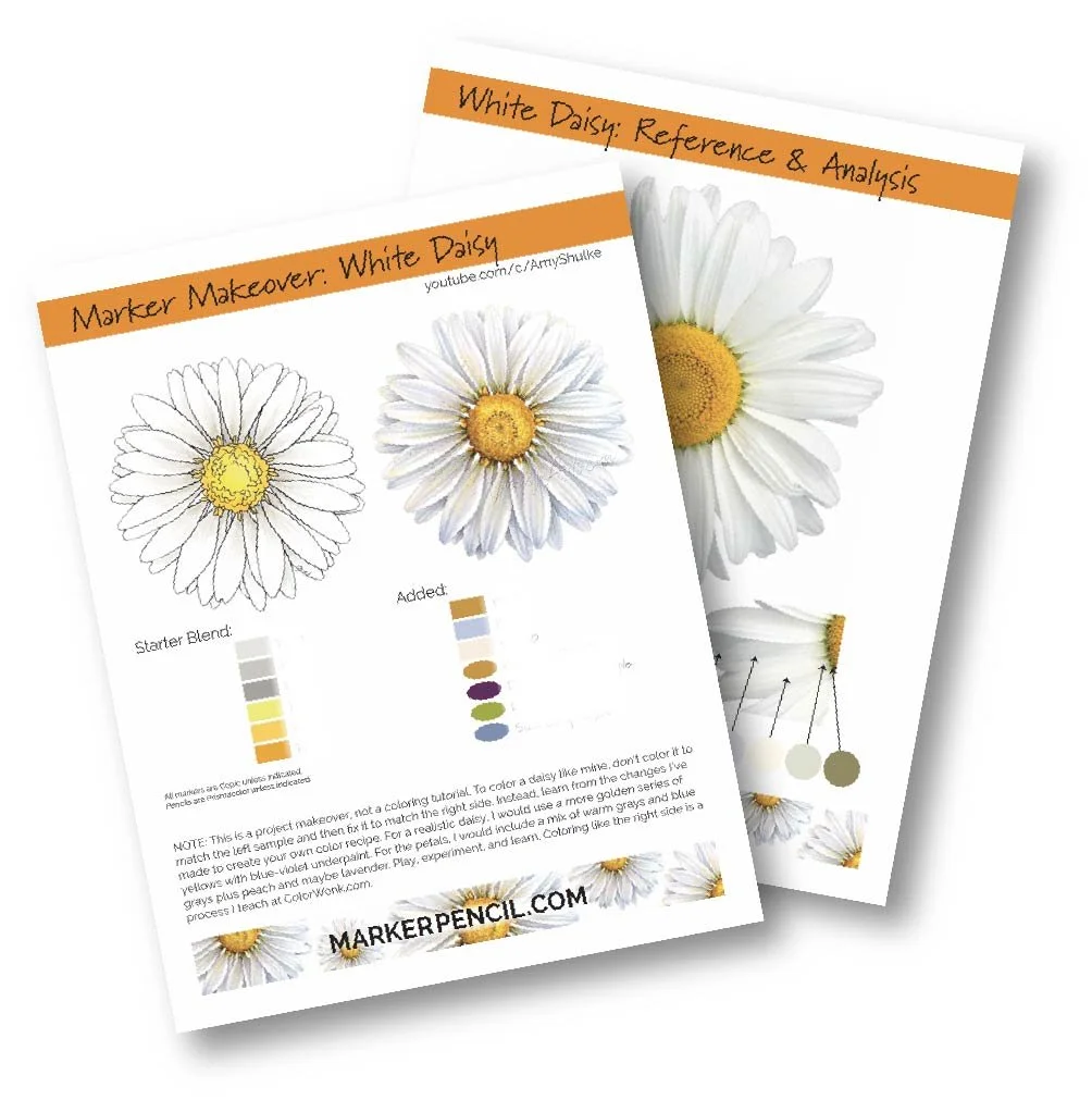 Supply list and project resources for “Marker Makeover: White Daisy” below